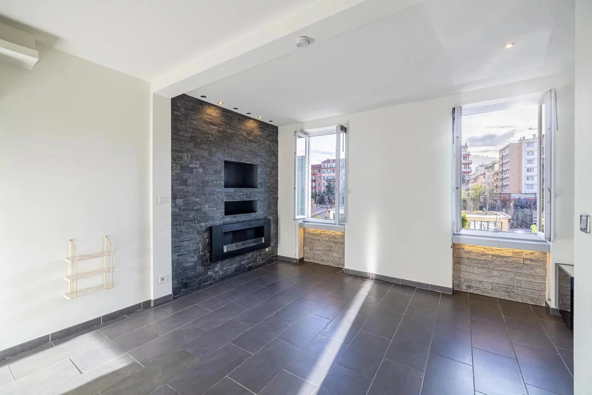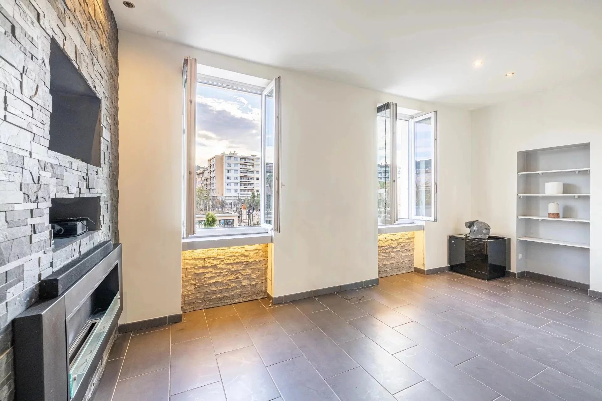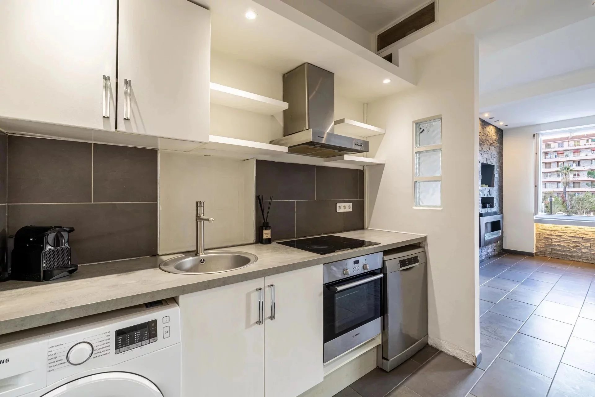 Niché au sein d’un immeuble niçois bien entretenu, cet appartement traversant séduit par sa luminosité naturelle et sa vue dégagée sur les jardins de la Coulée Verte, véritable écrin de verdure en plein centre-ville.