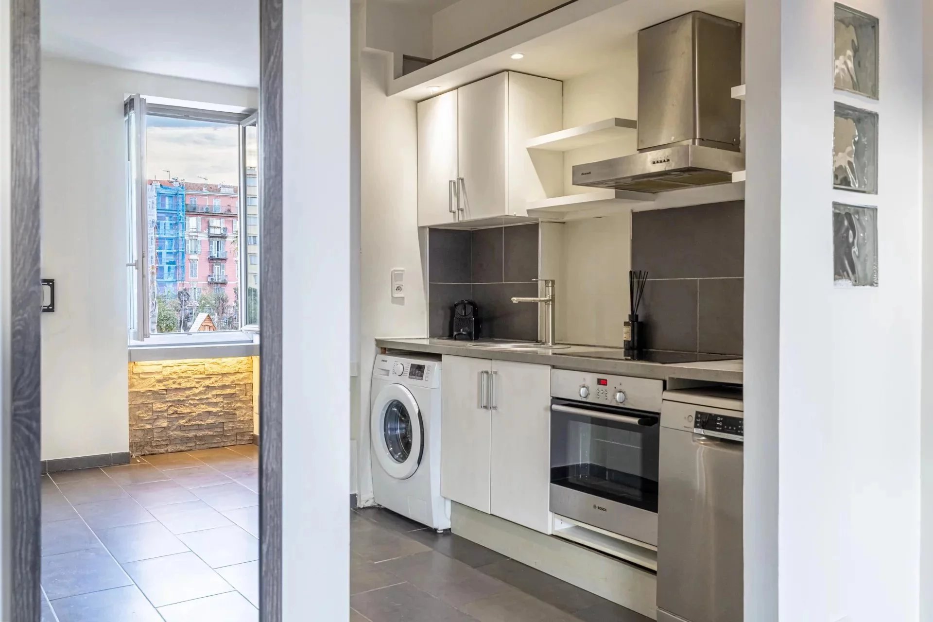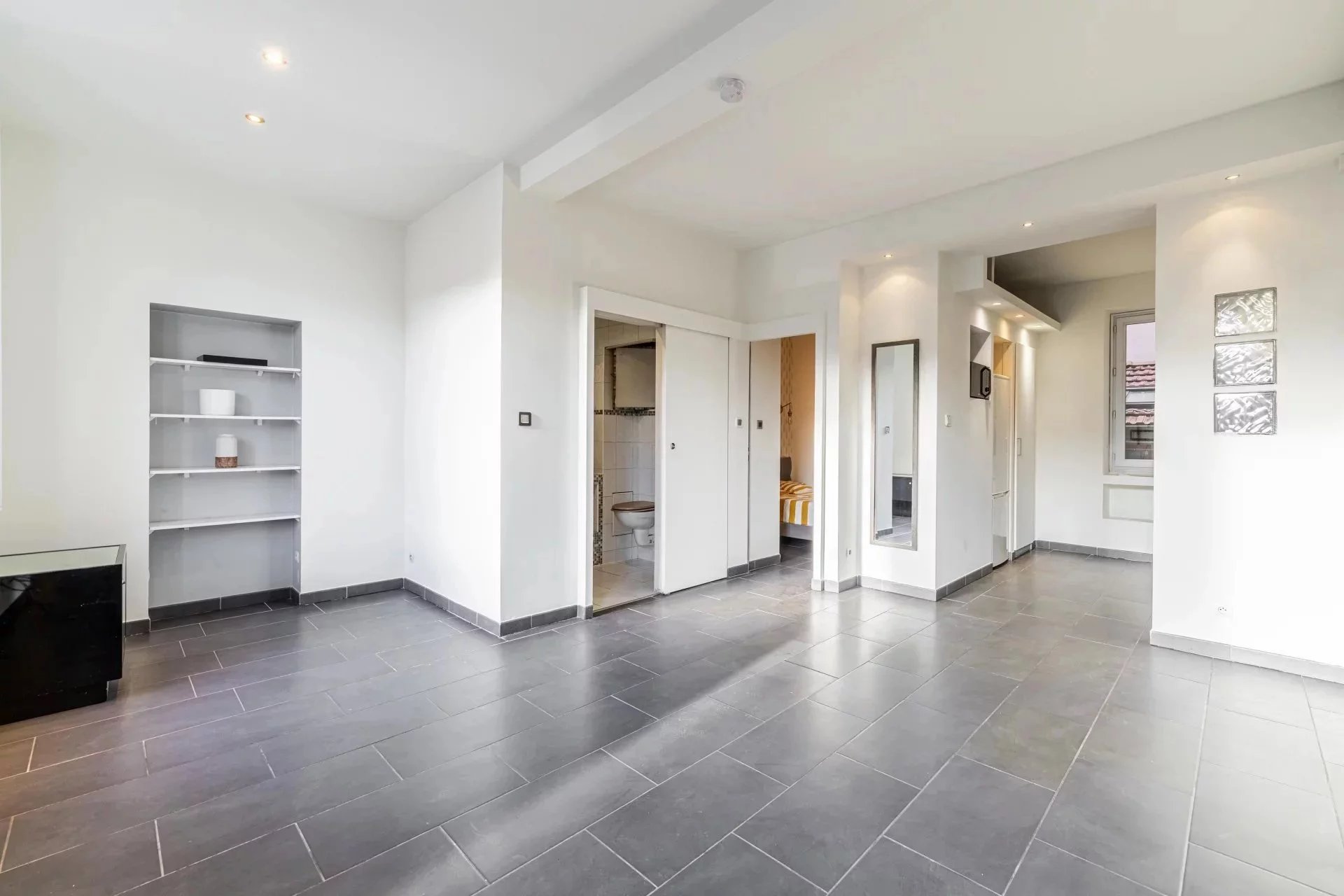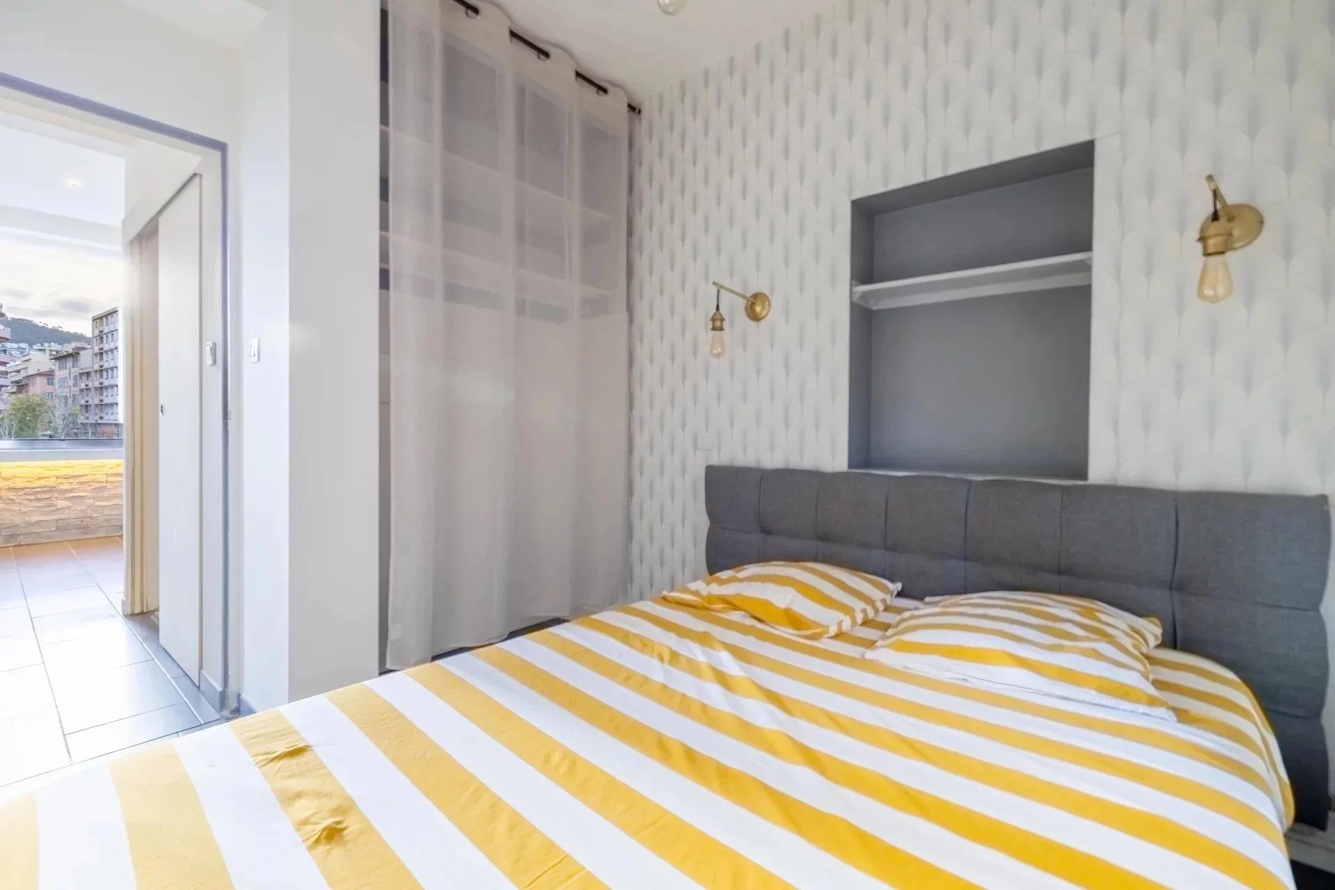 Niché au sein d’un immeuble niçois bien entretenu, cet appartement traversant séduit par sa luminosité naturelle et sa vue dégagée sur les jardins de la Coulée Verte, véritable écrin de verdure en plein centre-ville.